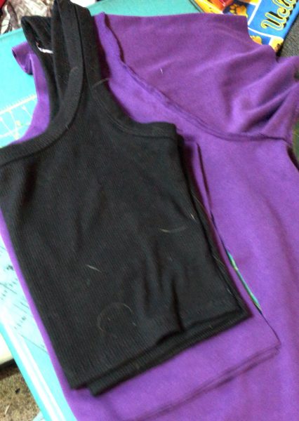 On Friday I got to have lunch with two of my local besties and we had fun catching up. Time always goes by so quickly! It was the 23rd of the month so we did this and later that night was Friday Night Lights where my girls wanted to dress up in purple for the student section at the football game. Ironically, neither of them had anything purple to wear for over 100 degree temps so I picked up a purple tee at Ross. I ended up making Kendall a tank top out of one of my old t-shirts. I used one of her tanks as a pattern. Despite me not having an actual pattern and not being a professional seamstress, it turned out pretty cute!