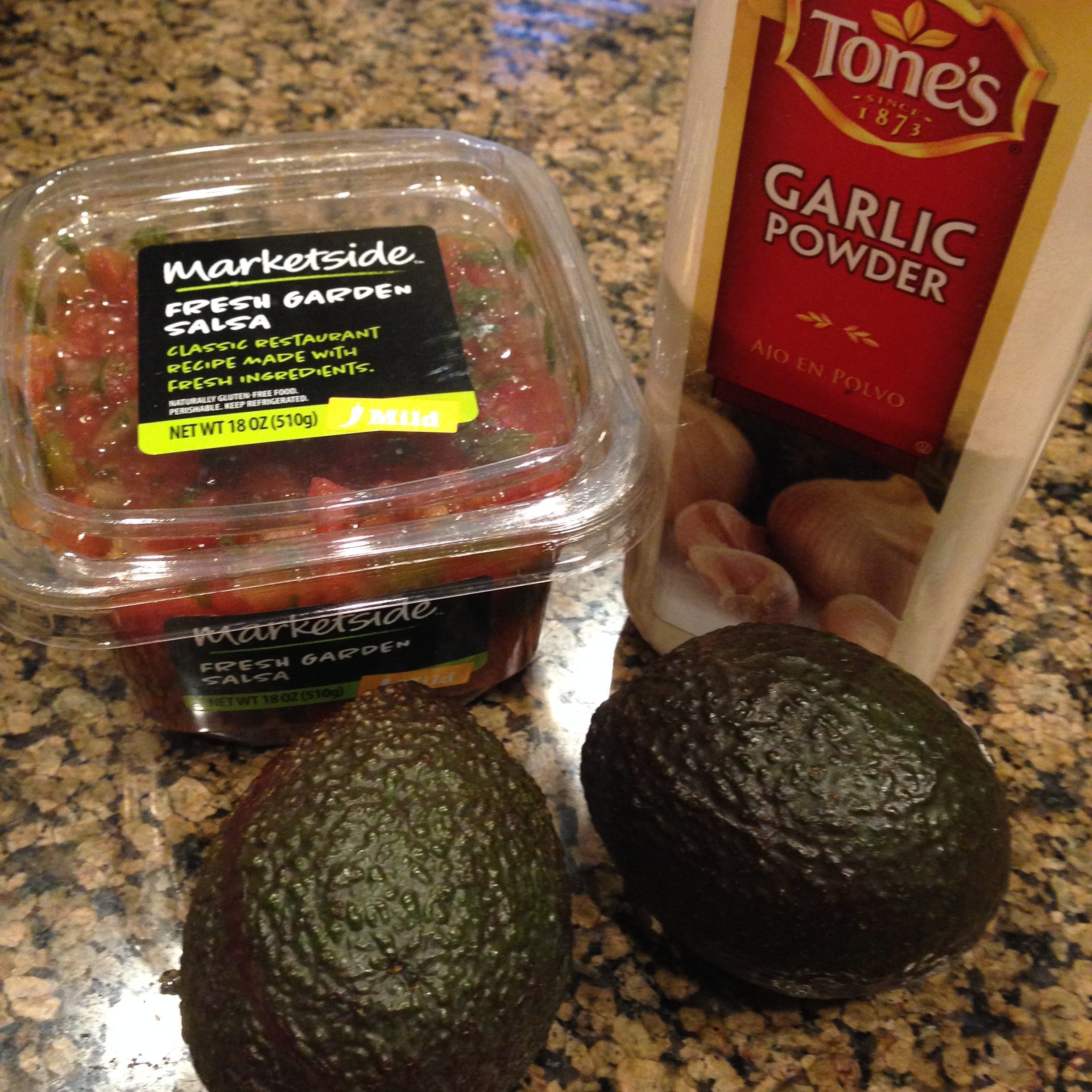 Take 2 ripe avocados, cut in half, remove pit and scoop out avocado into a bowl. Sprinkle some garlic powder over it. Don’t put too much…I usually just shake enough to cover the avocado. Then mash the avocado and garlic powder together. Next, take any store bought pico de gallo (or if you have your own favorite recipe you can knock yourself out and use that…I just don’t have time for that) and scoop out two nice heaping spoons of add it to the avocado mixture and VOILA…thats all I do. I know…too easy right. But I’m telling you, its crazy good. Even my girls like it…well they both used to until we found out my youngest was allergic to avocados. Poor kiddo 🙁 Thats a whole other story!