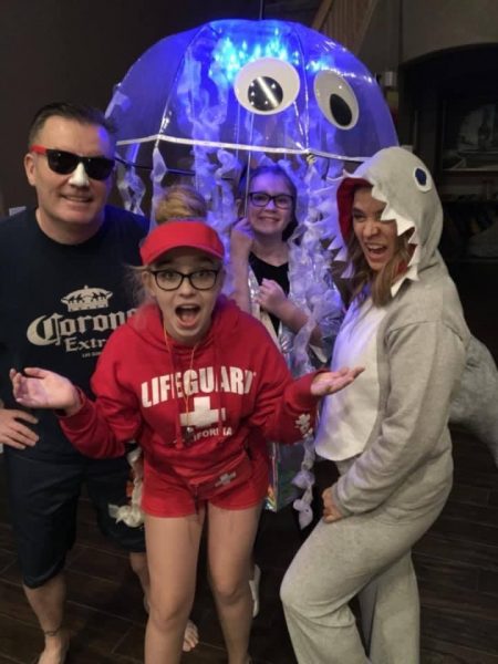 In 2018, there wasn’t a party at our neighborhood community center. We decided to go ahead and do another group costume and go out trick or treating in the neighborhood. Our theme this year was At the Beach! Our youngest daughters jellyfish costume was the most over the top. It got a lot of compliments while out trick or treating.