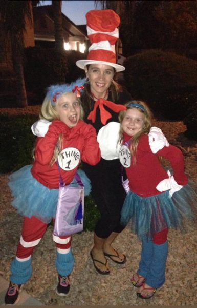My girls have always dressed up for Halloween but we never really did family Halloween costumes. It wasn’t until 2014 when my girls were Thing 1 and Thing 2, I decided to dress up as Cat in the Hat. So this was the first time we did something together.