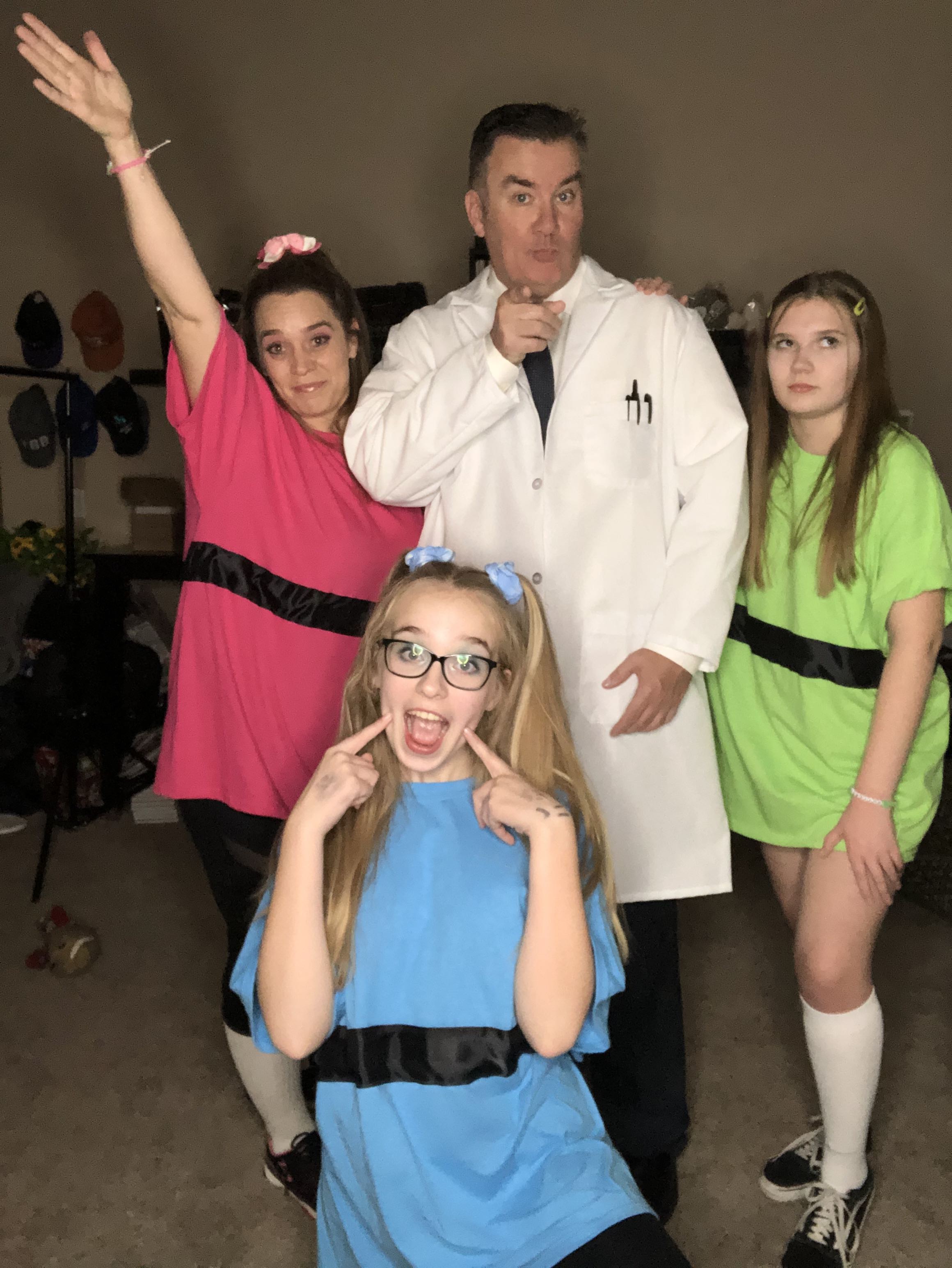 First off though, I thought I’d share what our family decided to do for our Halloween costume in case you missed it on social media! At the last minute we changed our original group costume idea to The Powerpuff Girls because my oldest and her friends picked this for their Homecoming spirit week group costume. With all that we had going on, I honestly just ran out of time to make the other group costume…so maybe we’ll use that one next year!