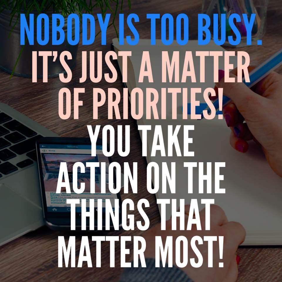 If you are serious about making changes in your life…you have to make them a priority!! We all have the same 24 hours in a day…what you choose to do with them is determined by what’s the most important to you!