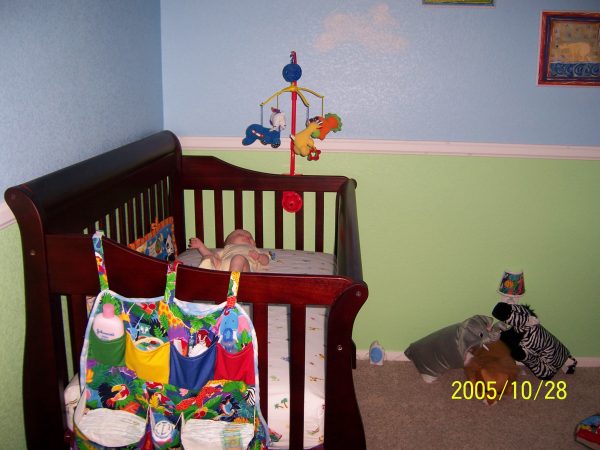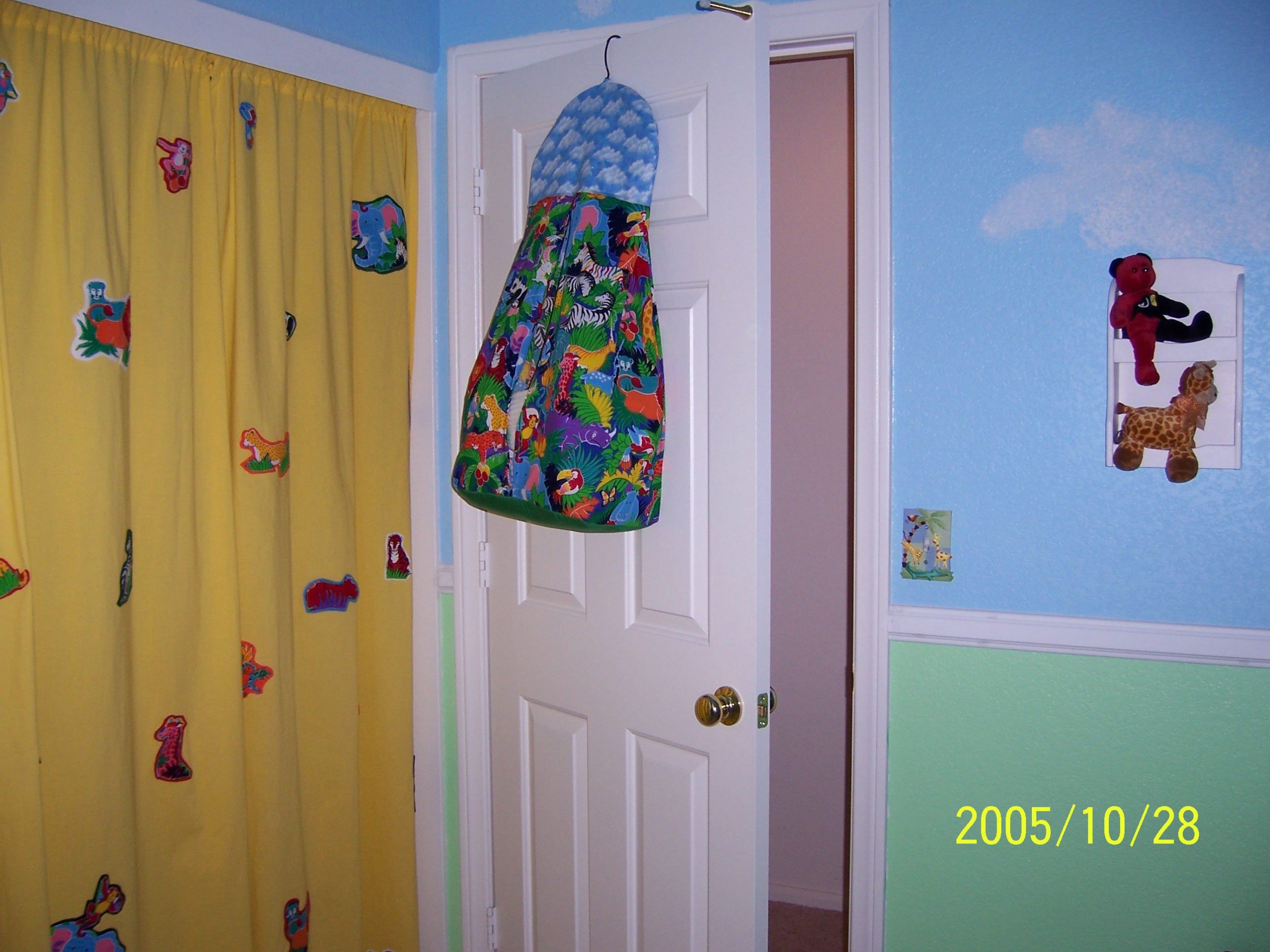 In these pictures I made the curtains, diaper holder, stuffed animal keeper, diaper organizer as well as a blanket (not pictured). I obviously had quite a bit of time on my hands before she arrived because for our second daughter, I bought all of her bedroom stuff.