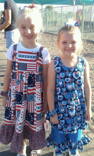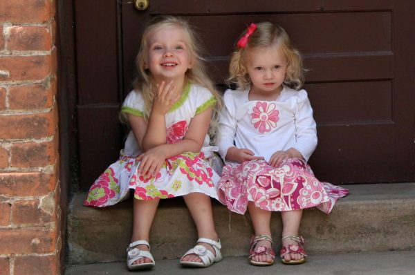 But this one might be my favorite picture of our girls in dresses I made. A little foreshadowing…check out whats on their wrists! They were definitely destined to be The Scrunchie Sisters!