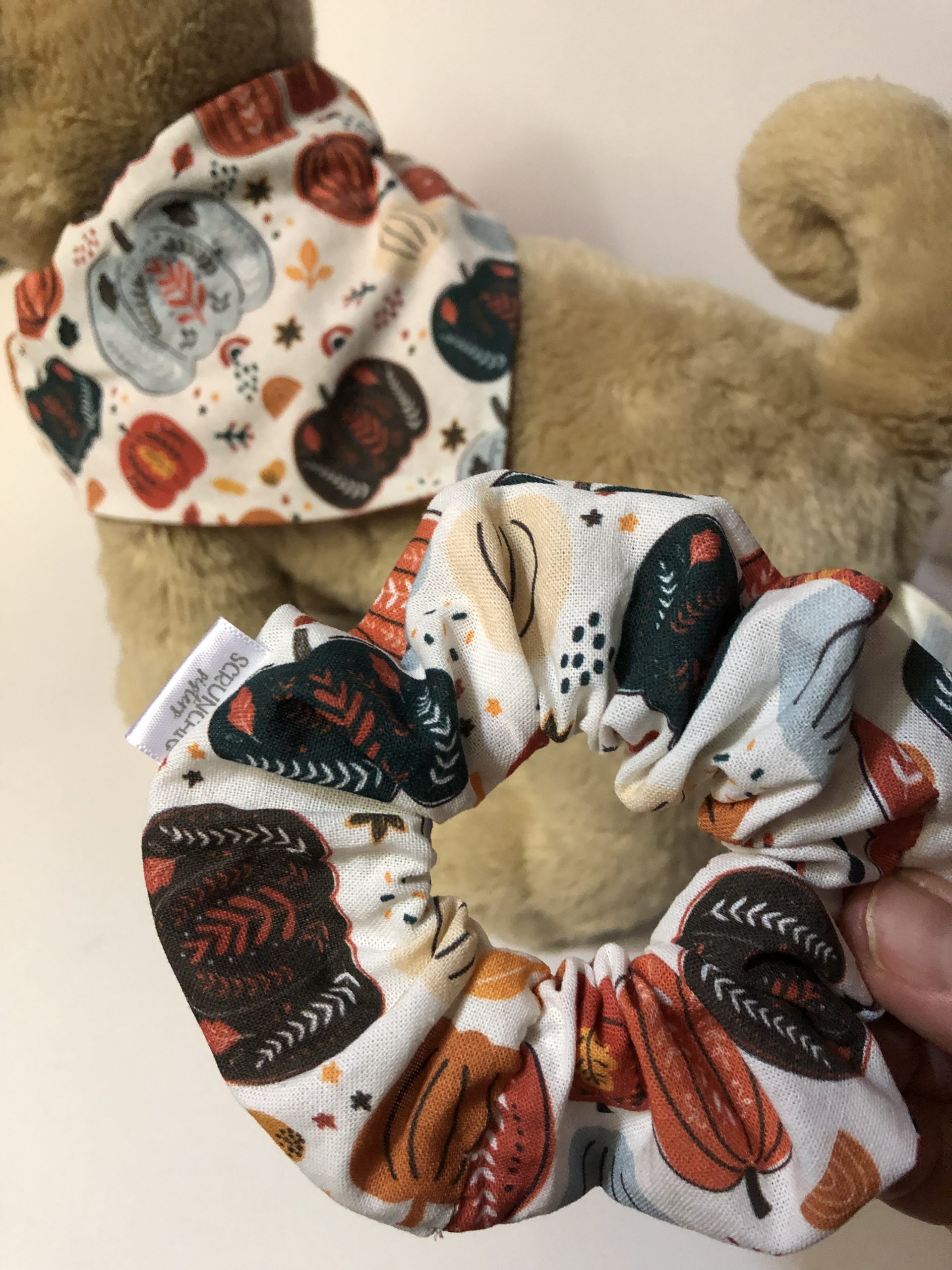 Honestly, making dog bandanas came about kinda on a whim. Over the years, I’ve made a couple different types of bandanas for our dogs but it wasn’t until I started making the ones that go over the collar that our dogs really kept them on and looked super cute. I decided to make a few for one of the events that the girls and I were going to for scrunchies and people loved them. I have been making them ever since.
